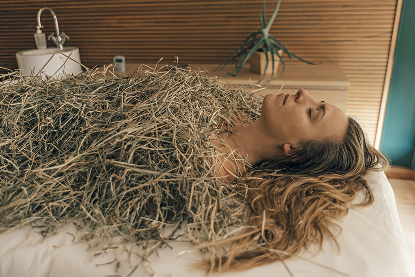 Anche nel centro benessere Amadea del Romantik Hotel Oberwirt di Marlengo, a due chilometri da Merano (BZ), l’impacco di fieno – raccolto ad altitudini elevate – è un rituale molto amato che stimola, depura, attiva la circolazione, corrobora il sistema immunitario e ha effetti positivi sull’intero apparato locomotore (40 minuti, 45 euro).
