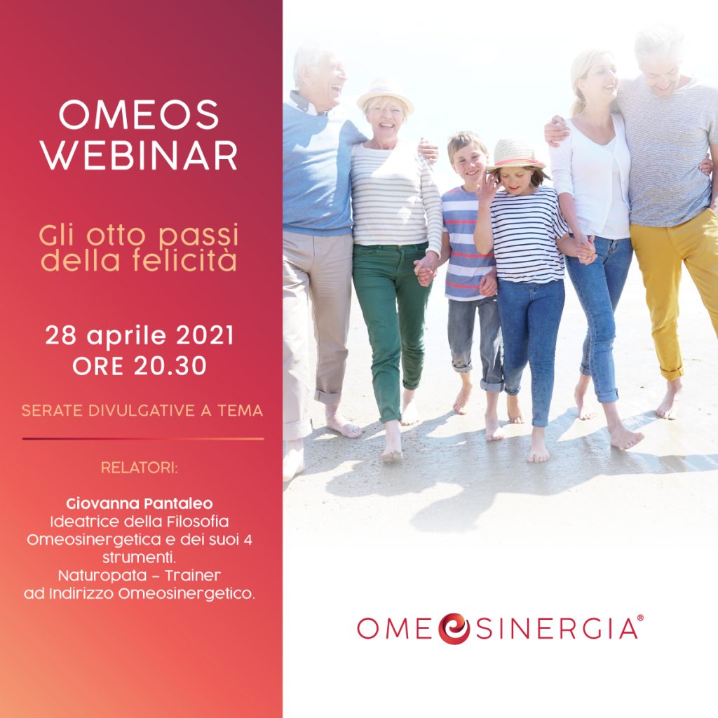 La Filosofia Omeosinergetica, grazie a un bagaglio esperienziale e terapeutico ha saputo dare delle risposte concrete a tutte queste domande. Gli otto passi della felicità, titolo accattivante che ci farà conoscere quelli che sono gli otto principi della filosofia omeosinergetica. Essi sono il vero nutrimento dell’essere umano, le tabelline del saper vivere. Lo scopo di questi principi è quello di far ritornare a essere se stessi, dando un senso a ogni esperienza che accade nel quotidiano. Sono universali, e sono definiti come il “sale della vita”, nel senso che condiscono le esperienze quotidiane, rendendole uniche. Essi sono chiavi di lettura della vita che permettono, una volta integrate e messi in pratica quotidianamente, di vedere con sguardo diverso le stesse realtà, e le esperienze, anche quelle più dolorose, in momenti di crescita sana e responsabile. Solo allora potremo capire cosa vuol dire felicità, una parola che racchiude il nostro modo di essere.