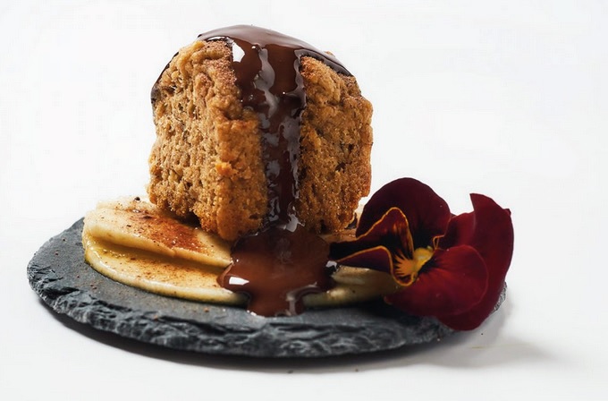 In una bowl mischiare le due farine con il lievito. Schiacciare le banane e unirle al burro di cocco liquefatto e al malto. Aggiungere il composto alle farine e mescolare, unendo l’acqua, fino a ottenere un composto omogeneo. Trasferire il composto in uno stampo, o in stampi monoporzione, e infornare a 180 °C per 15 minuti, verificando la cottura con uno stecchino. Sfornare e far raffreddare completamente prima di servire. A piacere accompagnare con banana fresca e una salsa di cioccolato che si ottiene sciogliendo il cioccolato a bagnomaria e unendo in pari proporzione di acqua e olio.
