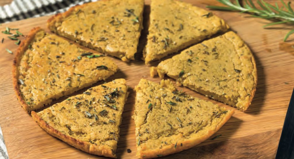 È una ricetta senza glutine, latticini e fermentati in quanto la farina di ceci non fermenta neanche in forno.