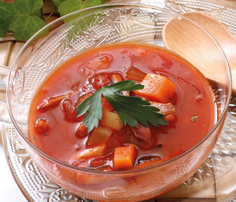 Mettete tutto, tranne i pomodori, in una pentola, aggiungete un litro d’acqua con un bel pizzico di sale e cuocete per dieci minuti. Aggiungete il semolino e proseguite la cottura finché sarà pronto; verso la fine aggiungete metà dei pomodori. Togliete dal fuoco la minestra, conditela con un ottimo olio extravergine di oliva, aggiungendo anche il resto dei pomodori e qualche altra foglia di basilico.