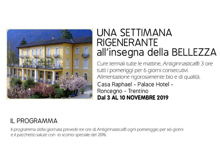 A Casa Raphael – Palace Hotel di Roncegno, in Trentino, il 3 novembre parte la settimana rigenerante all’insegna della bellezza.…
